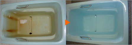 | 浴室・浴槽用専門塗料(耐熱・耐候・耐薬品・屈曲・抗菌・防カビ・安全性に優れた塗料)でお好みのカラーでコーティング致します。ガサ付き・長期使用で傷んだ浴槽など、新品に近い仕上がり(再生)を約束致します。施工費は入れ替え費用の半分以下です。 |