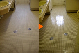 既存のタイルを壊さずに、タイルの上にセラミック樹脂を塗り上げる工法です。樹脂表面は非常に硬く、高耐久の床に生まれ変わります。 | ![]() |